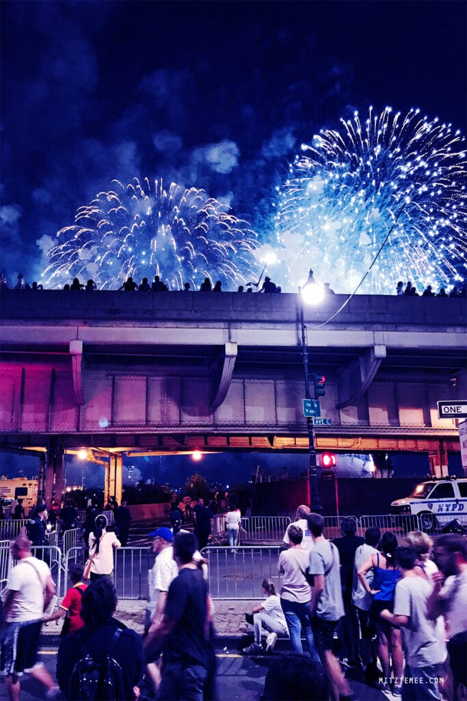 Einige meiner Freunde warnten mich, dass das Feuerwerk in NYC im Vergleich zu dem, was ich zuvor in Asien und Dubai gesehen hatte, etwas enttäuschend sein könnte, aber das war mir egal. Für mich ging es nicht so sehr um das Feuerwerk, sondern mehr darum, die Atmosphäre zu erleben und an einem so großen Ereignis teilzunehmen. Das Starren auf die gleichen Farbexplosionen am Himmel und das Erleben dieser sehr amerikanischen Feier. Ich war nicht enttäuscht.