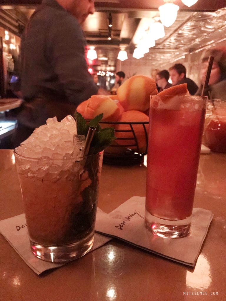Anscheinend sind die halbprivaten Kabinen und die wunderschön dekorierten Zimmer genau das Richtige für dich, aber wir hatten unsere Cocktails in der Bar und es war auch definitiv keine schlechte Wahl. Der Barkeeper war wirklich cool und nachdem sie ihm gesagt hatte, was wir wollten, schlug er ein paar Drinks vor, von denen er dachte, dass wir sie mögen würden. Ich kenne mich nicht mit Namen aus (auch nicht mit Cocktails), daher kann ich euch den Namen unserer Getränke nicht nennen, aber es war wahrscheinlich etwas Fruchtiges, aber nicht zu süß mit einer Basis aus Bourbon oder Gin, da dies das ist, das wir uns normalerweise dafür entscheiden. Eine wirklich schöne Bar mit wirklich guten Cocktails.