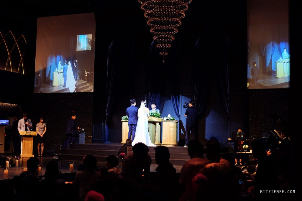 Die Hochzeit fand an einem Sommertag in einer Hochzeitskapelle in Pyeongtaek statt. In Südkorea werden diese Kapellen oft als „Wedding Halls“ bezeichnet. Diese Veranstaltungsorte sind speziell für Hochzeitszeremonien und -empfänge konzipiert und bieten eine Vielzahl von Dienstleistungen, um unterschiedliche Wünsche zu erfüllen. Die Zeremonie fand in einem großen Ballsaal in der Wedding Hall statt, der durch eine Plattform oder einen Laufsteg in zwei Hälften geteilt war: eine für die Familie und Freunde des Bräutigams und eine für die Familie und Freunde der Braut.